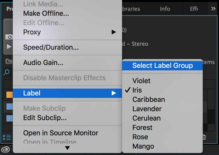 Premiere pro label colors
