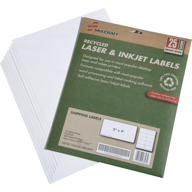 Address Barcode Shipping Labels from Blank Labels - 4” x 1” - 20 Labels Per Sheet - Permanent White Matte - Inkjet and Laser Guaranteed - Easy to Peel ...