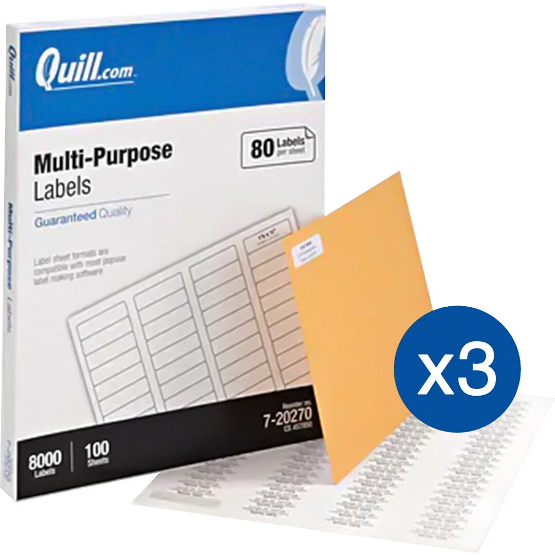 Quill Brand® Laser/Inkjet Labels, 1/2" x 1-3/4", White, 24,000 Labels (Compare to Avery 5167, 5267, 5967, 6467 & 8167)