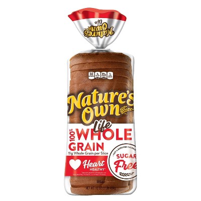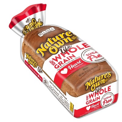 Nature's Own Sugar Free 100% Whole Wheat 100% Whole Grain Bread, 16 oz We're careful about maintaining the freshness and softness that have made us America's favorite bread brand, without using artificial preservatives, colors or flavors or high fructose corn syrup. Product Description NATURES OWN LIFE WHOLE GRAIN WHEAT SUGAR FREE BREAD Product details Product Dimensions : 10.85 x 5.7 x 4.8 inches; 1 Pounds