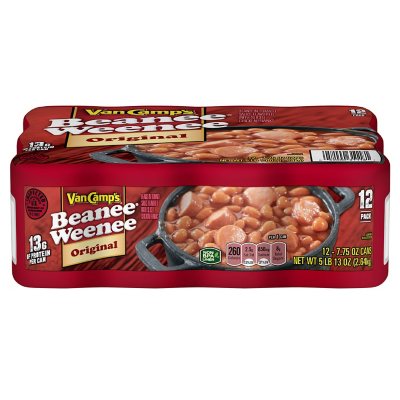 Van Camp's, Original Beanie Weenies, 1 can Nutrition Facts NUTRITION LABEL (% of daily value based on 2000 calories per day) Nutrition Facts. Van Camp's, Original Beanie Weenies, 1 can. Serving Size: grams (100g) * Amount Per Serving ; Calories: 240 cal : Calories from Fat: 72 cal % Daily Value : Total Fat: 8 g : 12.3%: Saturated Fat : 3 g : 🔒%