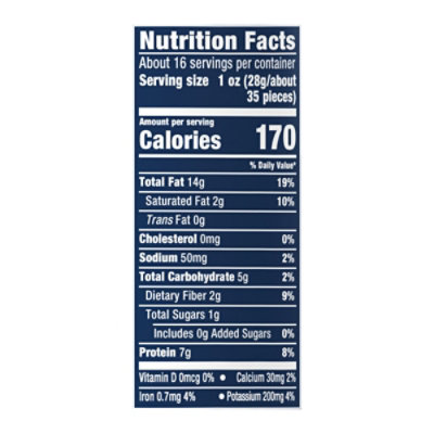 Calories in Planters Dry Roasted Peanuts and Nutrition Facts - FatSecret Planters Dry Roasted Peanuts Nutrition Facts Serving Size 39 pieces (28 g) Amount Per Serving Calories 160 % Daily Values* Total Fat 14.00g 18% Saturated Fat 2.000g 10% Trans Fat 0.000g Polyunsaturated Fat 4.500g Monounsaturated Fat 7.000g Cholesterol 0mg 0% Sodium 150mg 7% Total Carbohydrate 5.00g 2% Dietary Fiber 2.0g 7% Sugars 2.00g