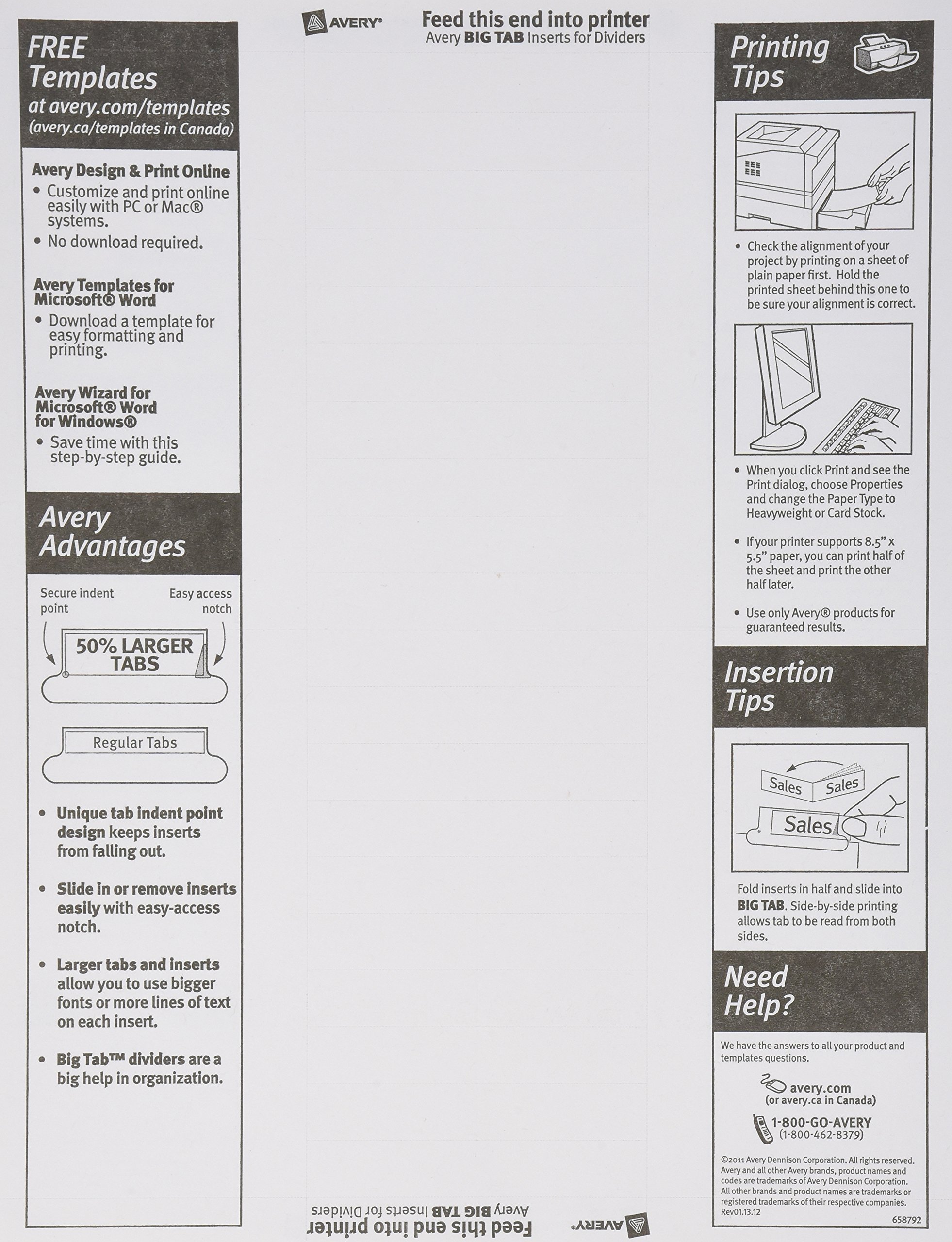 Avery big tab template 8-tab. Design & Print - print Avery Products the easy way | Avery It’s a free and easy way to design, edit and print Avery labels, cards and more. Avery Design & Print software allows you to select and personalise templates, generate labels from excel databases, create barcodes and serial numbers. Most of all, by using our specialist software, you will be more likely to print your labels successfully every time. Avery: Name Meaning, Origin, Popularity - Verywell Family Oct 7, 2021 · The name Avery is an English and French name meaning "ruler of elves." It's derived from the Anglo-Saxon name Alfred and the Ancient Germanic name Alberich. Its meaning stems from the elements aelf, meaning "elf" and ric, meaning "ruler." 1 Avery was mainly used for boys until around 2007, when it broke into the top 50 names for baby girls in ... Blank Labels | Personalised Labels & Stickers | UK Supplier | ... Avery is the leading global manufacturer of printable labels, cards and office accessories for the home and office. Check out our high-quality range today! Blank Labels | Personalised Labels & Stickers | UK Supplier | Avery UK | Avery Avery Dennison - Innovative Packaging Materials Solutions and ... Avery Dennison is a materials science and manufacturing company specialized in the design and manufacture of a wide variety of labeling and functional materials. Our expertise and global scale enable us to deliver innovative, sustainable and intelligent solutions to customers all over the world.