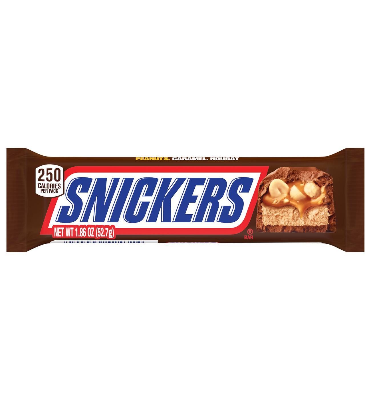 SNICKERS® Official Website | Chocolate Bars, Recipes and More SNICKERS® Official Website | Chocolate Bars, Recipes and More Hungry? MAYBE YOU JUST NEED A SNICKERS. SEE THE LINEUP. Hello. I'M SNICKERS BROWNIE. HAVE WE MET? LET'S GO. TIME TO PLAY FAVORITES. SNICKERS ORIGINALS PICK ME. SNICKERS BROWNIE PICK ME. SNICKERS ICE CREAM PICK ME. Recipe SWEET AND SALTY SNICKERS POPCORN. VIEW RECIPE. Made With 'Contains Bioengineered Food Ingredients' - Why It's On So Many Labels ... Update: So the reason why GMO warning labels are suddenly appearing on many food products is that the effective date of the GMO labeling rule was 2/19/2019 but the mandatory compliance date was not until January 1, 2022. Food companies have had 3 years to feed us GMO foods without telling us. Here is more information on GMO labeling from the USDA: Snickers bar Nutrition Facts - Eat This Much Snickers bar Candies, mars snackfood us Report a problem with this food Find on Amazon Percent calories from... Quick stats 279.9 Calories 35.1g Carbs (33.7g net carbs) 13.6g Fat 4.3g Protein Estimated $0.44 Try our free Diet Generator I want to eat calories in meals. I like to eat Generate Not the food you're looking for? Try these: Facts About SNICKERS® | Candy bar history and contact The very first SNICKERS Bar, allegedly named after a horse, was manufactured in Chicago and sold for five cents. 1967-1990 SNICKERS is called the Marathon Bar in the UK. 1968 Fun Size SNICKERS is created, followed by an increase in satisfaction levels worldwide. 1984 SNICKERS is an official sponsor of the 1984 LA Olympic Games.