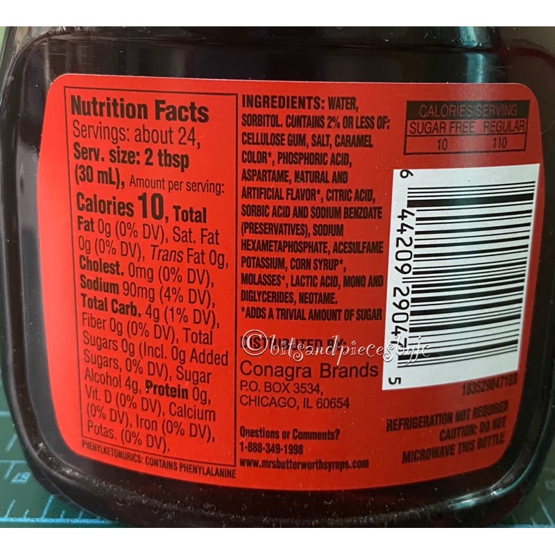 Mrs butterworth nutrition facts